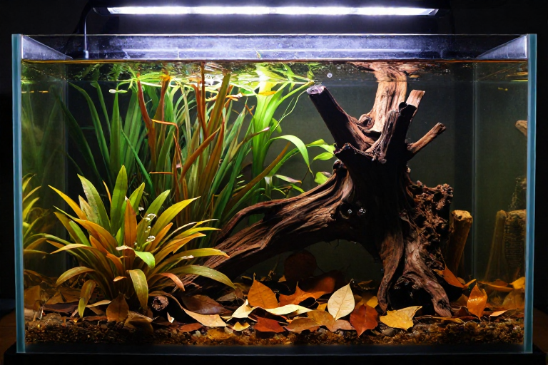 💡 What I learned: Spider wood is beautiful but frustrating. Manzanita and Malaysian driftwood sink faster.