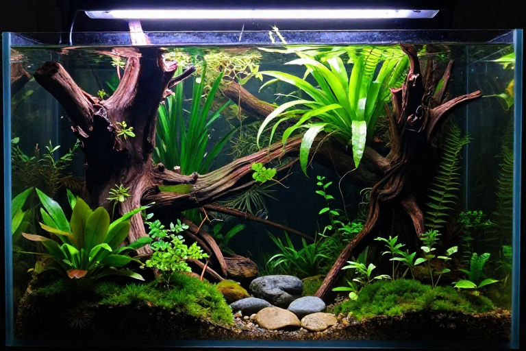 💡 What I learned: Spider wood is beautiful but frustrating. Manzanita and Malaysian driftwood sink faster.