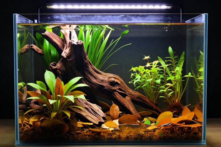 For a Biotope layout, you need 2-3 pieces driftwood + 1 oz leaves of Regional Driftwood + Leaf Litter. Based on Tropica's setup guides, soak driftwood for 2+ weeks to prevent tannin leaching and floating.