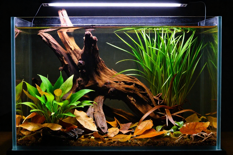 For a Biotope layout, you need 2-3 pieces driftwood + 1 oz leaves of Regional Driftwood + Leaf Litter. Based on Tropica's setup guides, soak driftwood for 2+ weeks to prevent tannin leaching and floating.