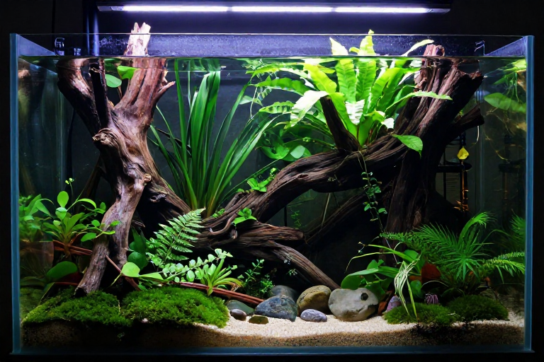 💡 What I learned: Spider wood is beautiful but frustrating. Manzanita and Malaysian driftwood sink faster.