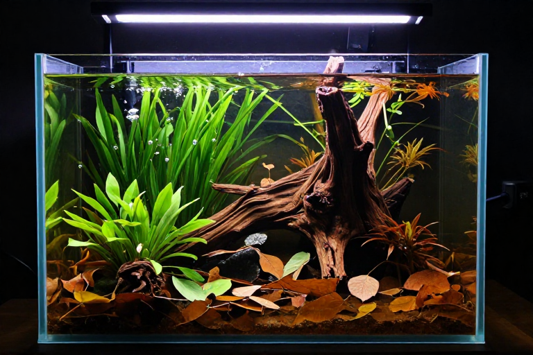 💡 What I learned: Spider wood is beautiful but frustrating. Manzanita and Malaysian driftwood sink faster.